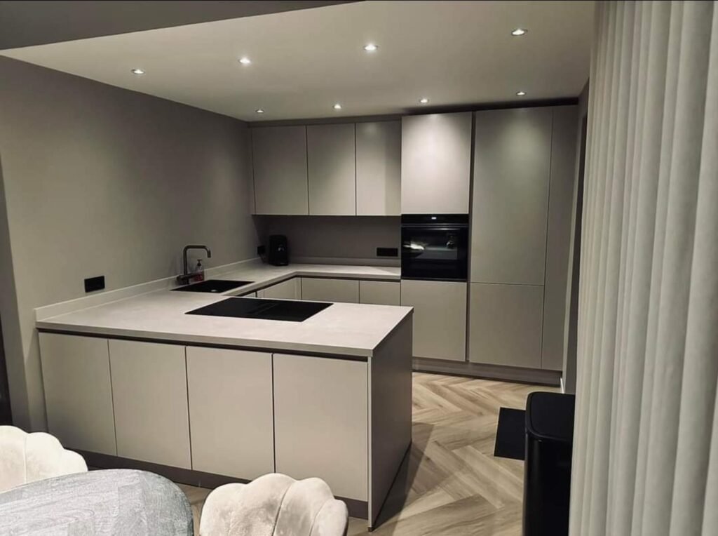 Met de keuken op zijn plek krijgt de vloer het podium dat hij verdient. In een schone, stofvrije ruimte hecht iedere vloer beter en blijft het vlakbeeld rustig. Bij pvc draait het om een vlakke, droge ondergrond en een zorgvuldig lijmregime. Laminaat vraagt om de juiste ondervloer en een constante luchtvochtigheid zodat naden mooi sluiten. Voor parket telt acclimatiseren en gecontroleerd opstarten van de vloerverwarming zodat het hout zonder spanning kan werken. Tegels hebben baat bij een stabiele, scheurvrije dekvloer en zorgvuldig inwassen zodat het vlak doorloopt tot aan plinten en stijlen. Gietvloeren komen het best tot hun recht in een volledig droge, stofvrije ruimte met voldoende uithardtijd.